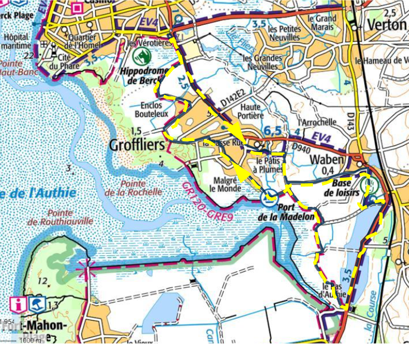 Les premiers kilomètres quittent Berck-sur-Mer en direction du sud à travers les paysages ouverts du littoral. Rapidement, l’ambiance devient plus sauvage : grandes prairies humides, canaux et vastes horizons témoignent de la proximité de l’estuaire de l’Authie.